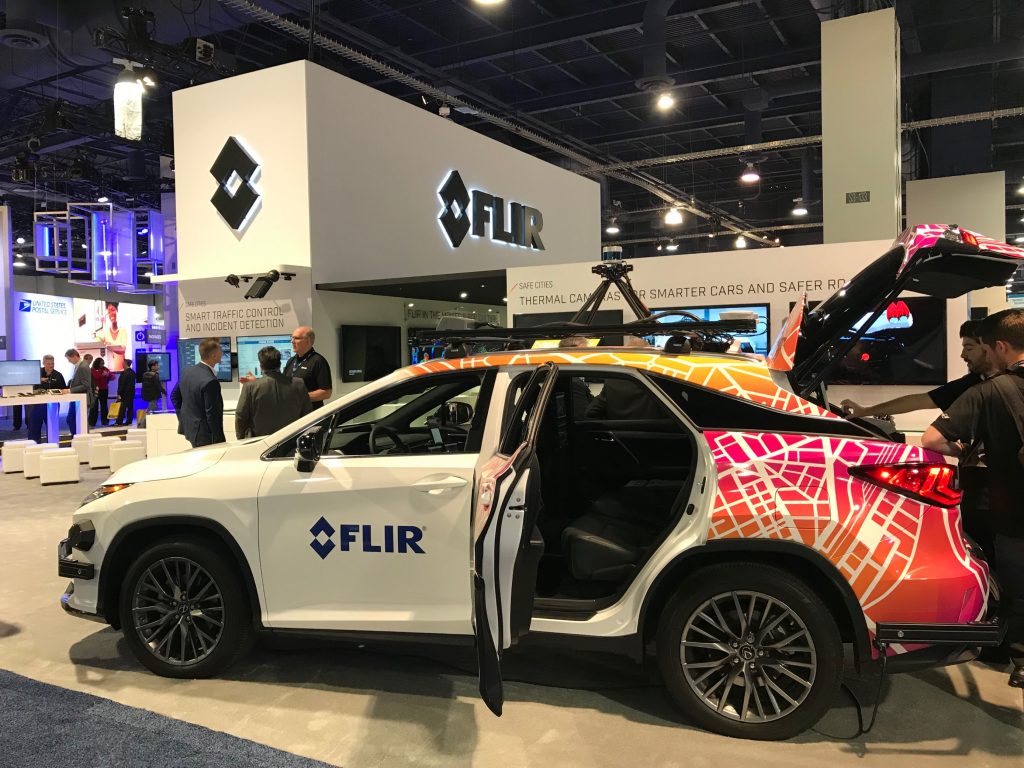 FLIR displayed their new AS-built drive-by-wire Lexus in the South Hall and showed this video, showing the capabilities of their thermal cameras and our shuttle waypoint following software stopping for objects.