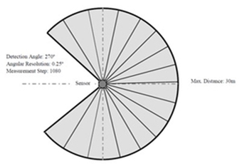 The Hokuyo UTM-30LX Scanning Laser Rangefinder is a small, affordable and accurate laser scanner that is perfect for small robotic applications. The UTM-30LX is able to report ranges from 100mm to 30m (1mm resolution) in a 270° scanning arc with 0.25° angular resolution. Its power consumption is only 12V/700ma which allows it to be used on battery operated platforms.