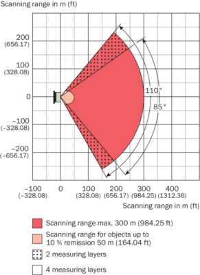 Aperture angle | 85°, Working range with 4 measuring planes, 25° extension of working range with 2 measuring planes to a total of 110° |